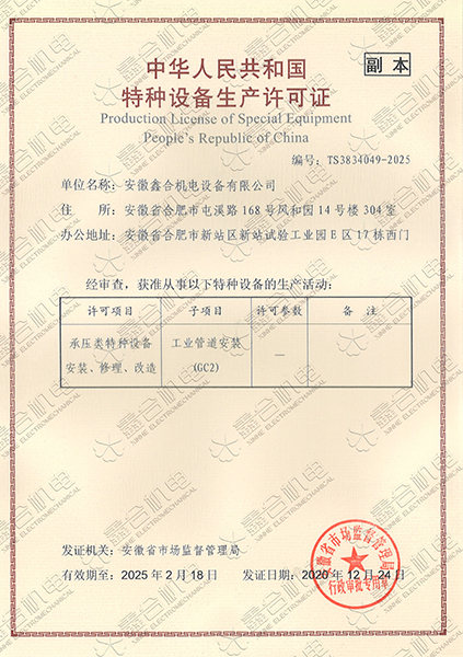 目前我公司具有建筑機(jī)電安裝工程專業(yè)承包一級資質(zhì)、總承包二級、GC2壓力管道設(shè)計、施工資質(zhì)。現(xiàn)有高級工程師5名、高級技師55名、工程師22名、助工25名、技術(shù)員22名、各類專業(yè)技師50多名,強(qiáng)大的技術(shù)力量及精良的施工隊(duì)伍,為客戶提供全方位服務(wù)。 公司本著“一切為了用戶”的經(jīng)營理念,“以品質(zhì)求生存、以誠信贏市場、以管理促發(fā)展”為要求,努力為廣大客戶提供專業(yè),優(yōu)質(zhì)、高效的服務(wù)。
